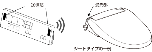 下記はリモコンの送信部とトイレ本体の受光部の一例です。
